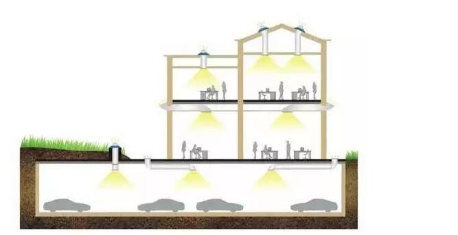 取代了白天用電照明,通過采集日光并利用折射等技術,將室外自然光轉換到室內(nèi)照明。順便也解決了建筑不能做吊頂、給建筑內(nèi)帶來地眩光、冷熱給空調(diào)帶來的負荷等問題。